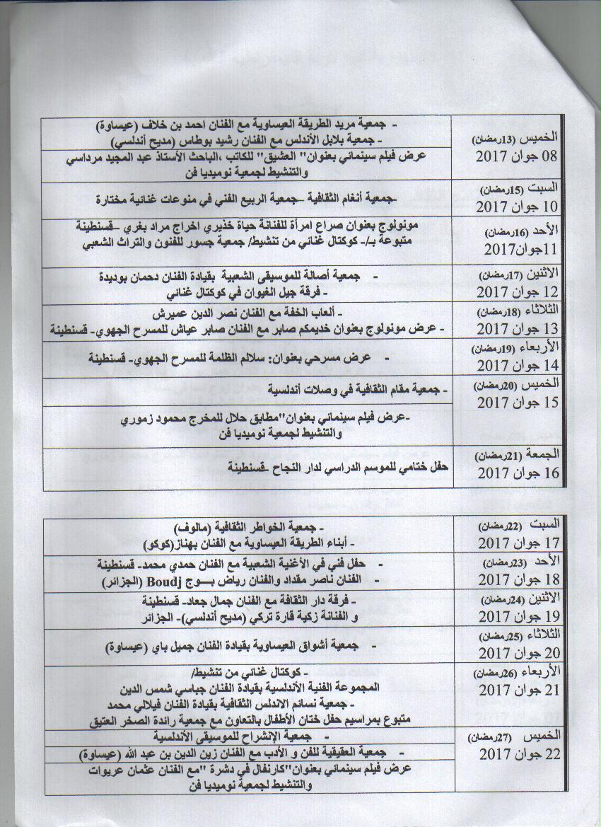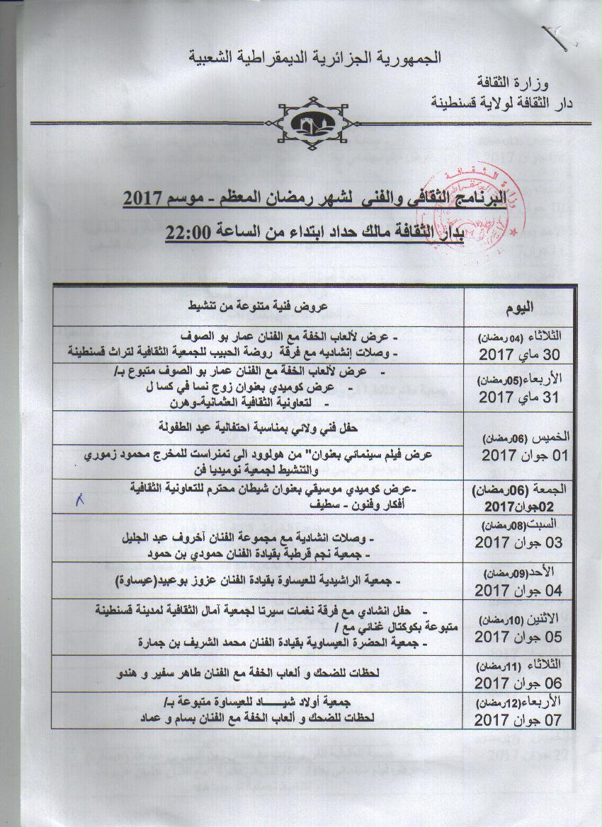 برنامج شهر رمضان2017 دارالثقافة لولاية قسنطينة