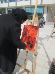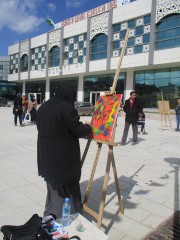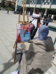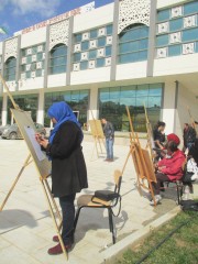 في اطار برنامج الإحتفال باليوم العالمي للمرأة، إفتتحت بدار الثقافة مالك حداد يوم الثلاثاء 07 مارس 2017  ورشة بعنوان ” لوحة وموسيقى” تحت شعار “حوار الريشة والأوتار ” ببهو دار الثقافة مالك حداد.