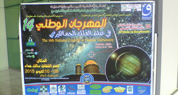 ينطلق اليوم 08 أكتوبر 2015 بدار الثقافة مالك حداد المهرجان الوطني لعلم الفلك والذي يدوم إلى غاية 10 أكتوبر 2015 من تنظيم جمعية الشعرى بمشاركة 20 جمعية لعلم الفلك من مختلف ولايات التراب الوطني، ويشمل البرنامج معارض للفلك ،ملتقيات،محاضرات لأساتذة مختصين في علم الفلك .
