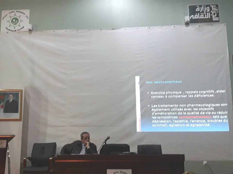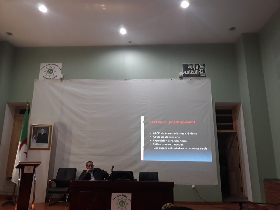 اقيم بدار الثقافة مالك حداد يوم السبت 24 فيفري 2018 يوم تحسيسي حول مرض الزهايمر من تنظيم دار الثقافة بالتعاون مع الفريق الطبي لقسم الأعصاب للمستشفى الجامعي ابن باديس ومن تنشيط البروفيسور سليم جلواط .